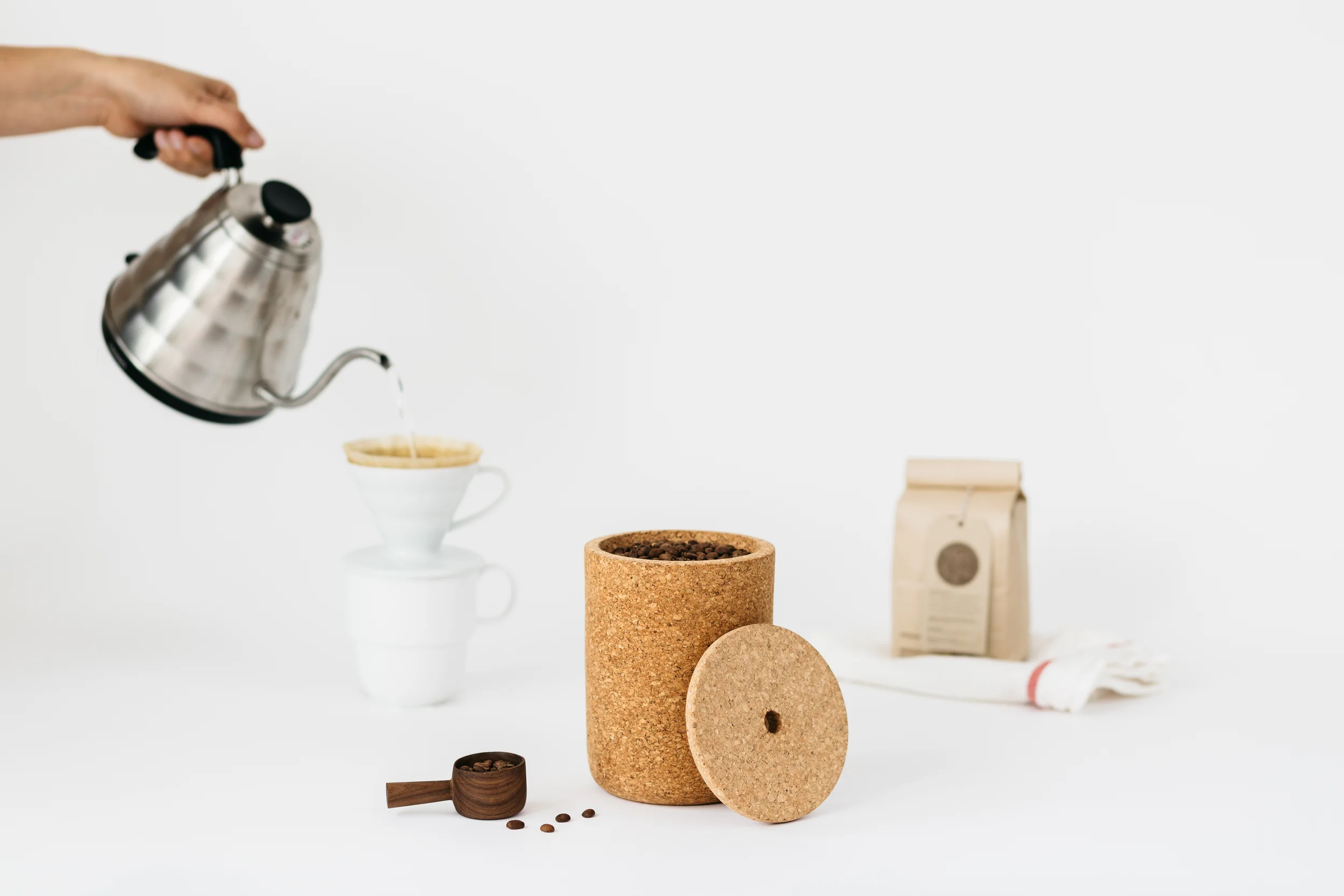 This beautiful Cork Coffee Canister with Walnut Spoon is hand-turned in Oakland, CA. Each canister is carefully made with sustainably farmed cork and finished with natural linseed oil and beeswax. You are able to remove the scoop from the handle and use it to measure the your coffee beans. Perfect for your favorite coffee, tea or even dry goods! With its minimal design and gorgeous curves, it will look beautiful in any home.