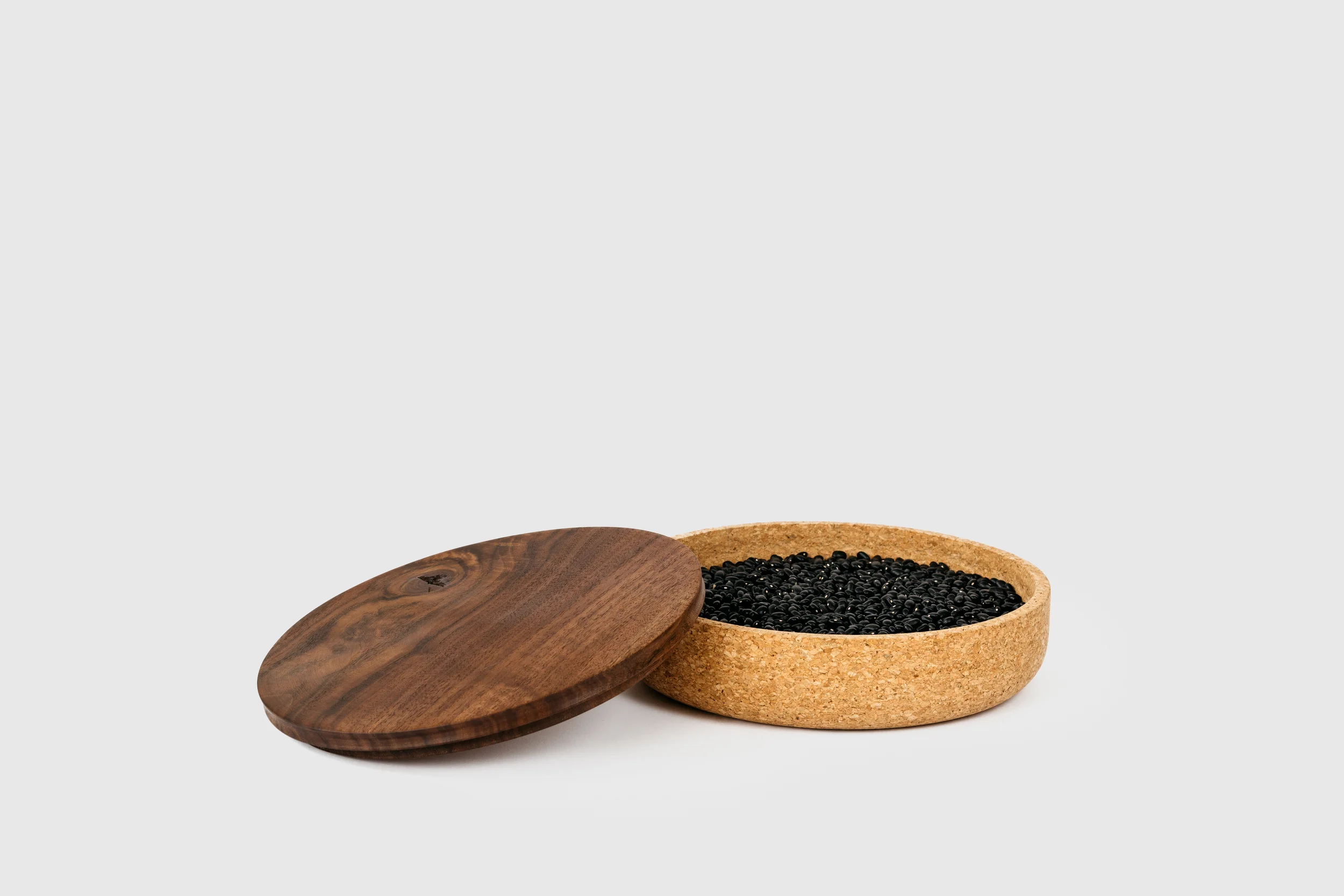 These beautiful Walnut + Cork Canisters are hand-turned in Oakland, CA. They are carefully made with hand-selected hardwood from a local lumber yard and uses sustainably farmed cork. Each piece is finished with natural linseed oil and beeswax. Perfect for your favorite dry goods! With its minimal design and gorgeous curves, it will look beautiful in any home.