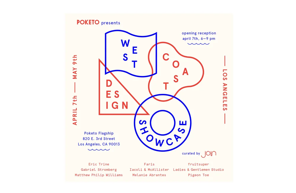 The west coast is the best coast! Here is the show to prove it! Join Melanie and her friends from JOIN Design and Poketo at the show's grand opening next week in Poketo's Downtown LA Store on April 7th. They will be showcasing the best of the west from designers Eric Trine, Faris, fruitsuper, Gabriel Stromberg, Lacoli & Mcallister, Ladies & Gentleman Studio, Mathew Williams Studio, Melanie Abrantes Designs and Pigeon Toe Ceramics.