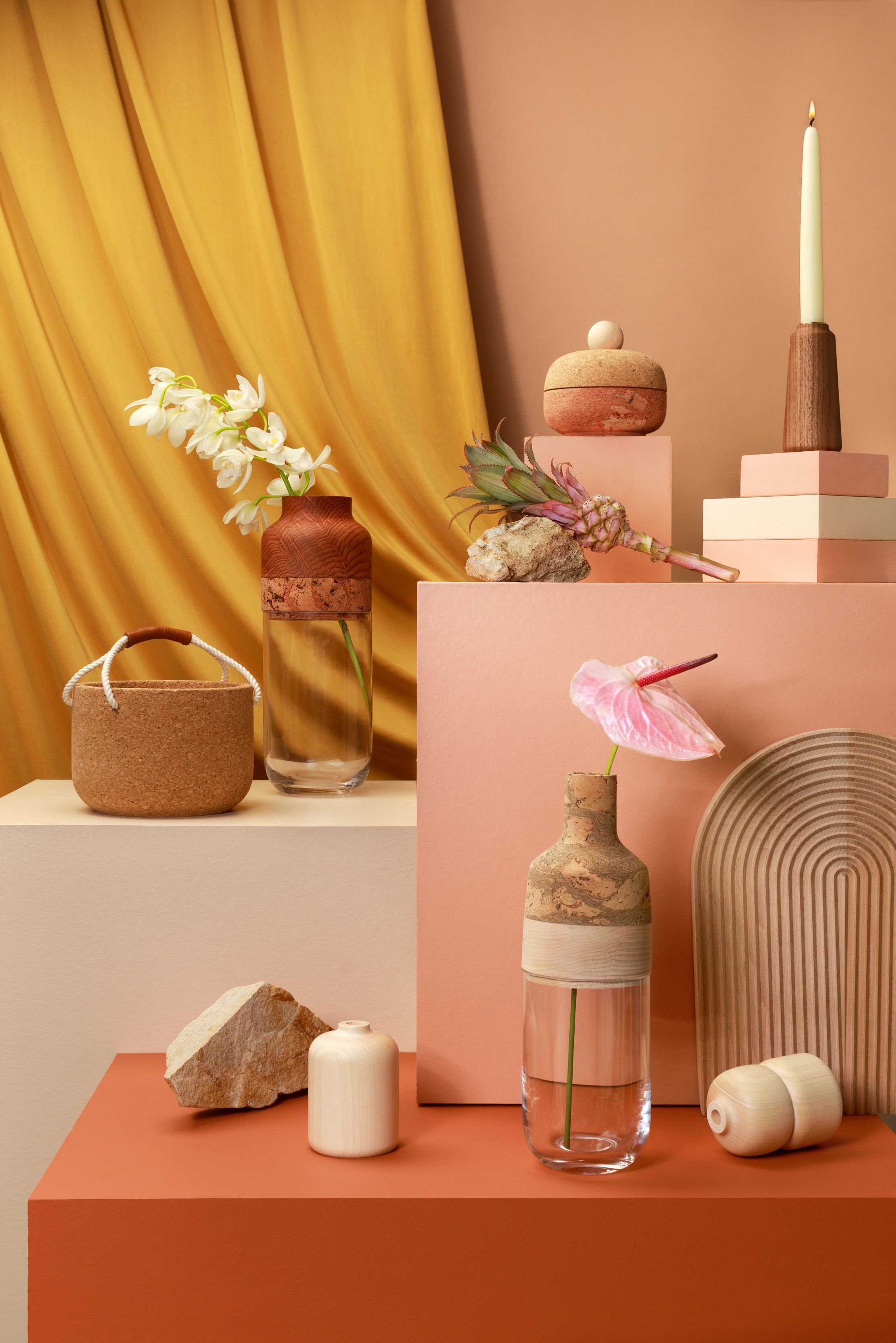 Inspired by the the colors and forms of the California Coast, we have combined natural materials to create sculptural forms that play with balance and shape. The Winter 2019 shoot features playful compositions and contrasting colors to highlight the natural beauty of raw material.